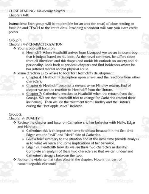 Wuthering Heights Close Reading Chapters 4 10 By Teach Simple